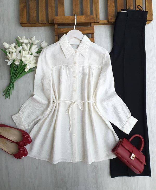 ALENE BELİ İPLİ SALAŞ GÖMLEK TUNİK B3-3-5664-20-BEYAZ