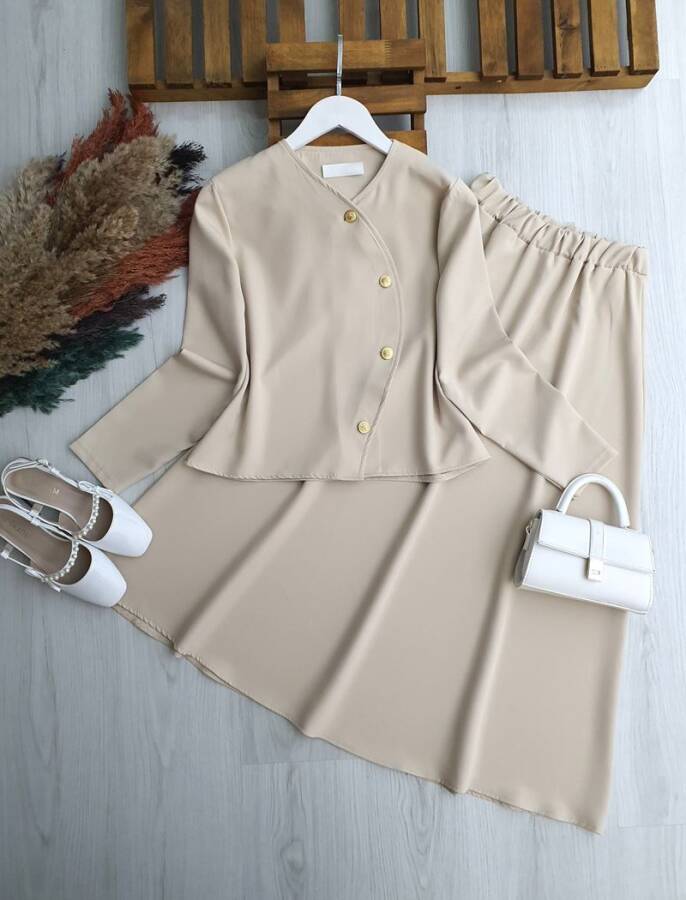 ALNES ÇAPRAZ DÜĞMELİ DOUBLE ETEKLİ TAKIM B3-1-1715-34-BEJ