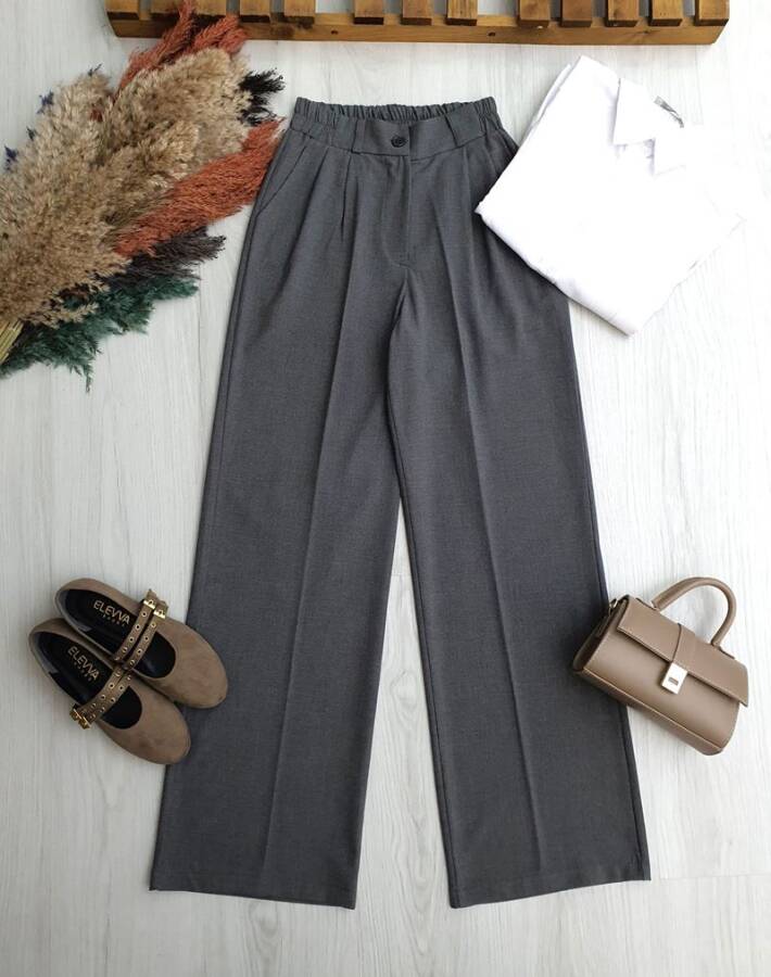 ANKER BELİ LASTİKLİ POLİVİSKON PALAZZO PANTOLON B2-7-6106-58-FÜME