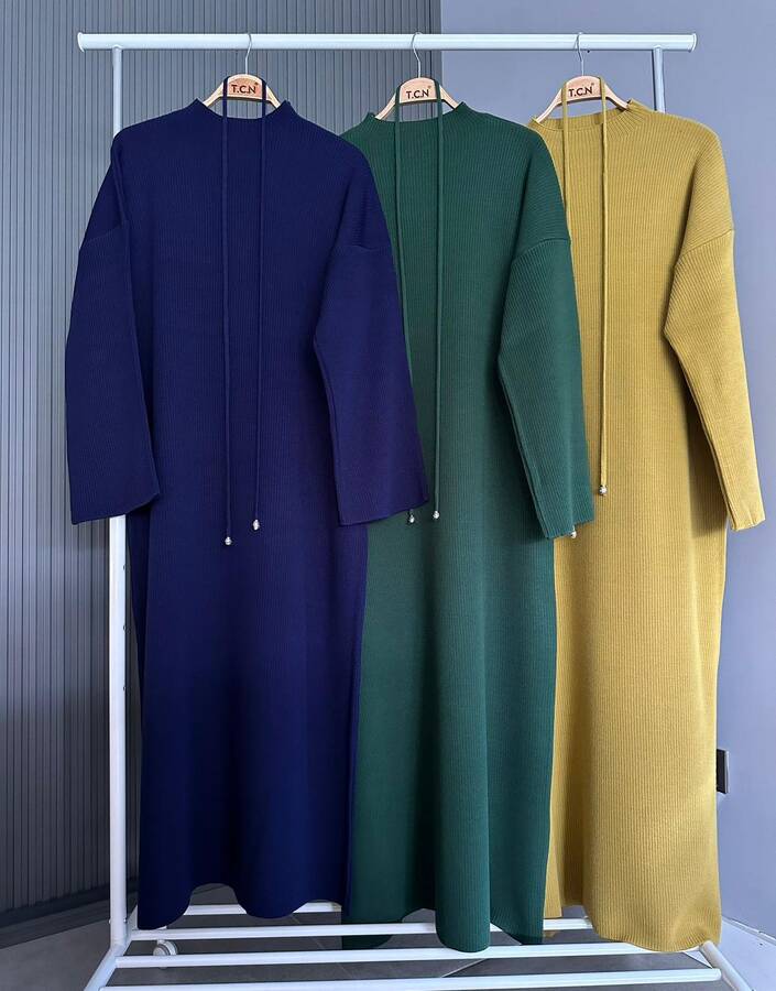 ANYS BOL KOL BELİ BAĞLAMALI TRİKO ELBİSE A9-2-8119-12-LACİVERT