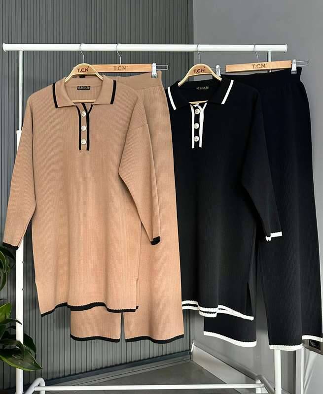 JASLE ŞERİTLİ GÖMLEK YAKA TRİKO TAKIM A9-1-8102-48-BİSKÜVİ