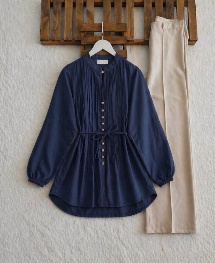 AUDE BRİT DÜĞME NERVÜR DİKİŞ SALAŞ GÖMLEK TUNİK 5725-12-LACİVERT