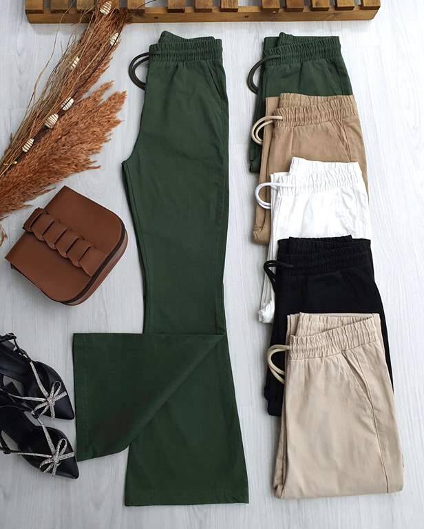 AYFE BELİ LASTİKLİ BAĞCIKLI İSPANYOL GABARDİN PANTOLON C8-6045-09-HAKİ
