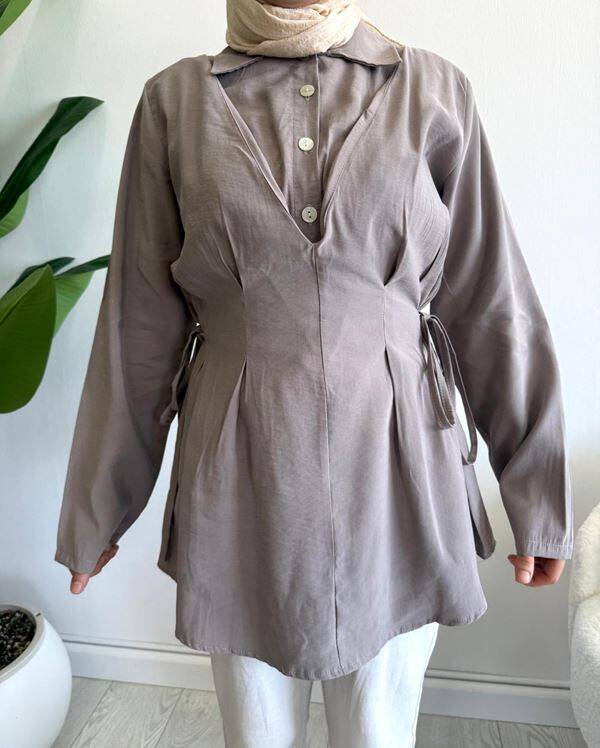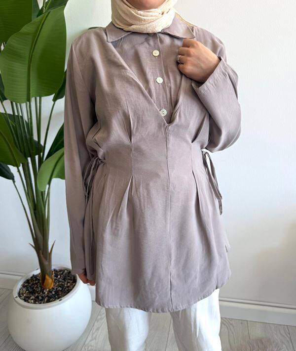 BAJED YANDAN BAĞCIKLI YARIM DÜĞMELİ TUNİK A5-4-5711-25-VİZON