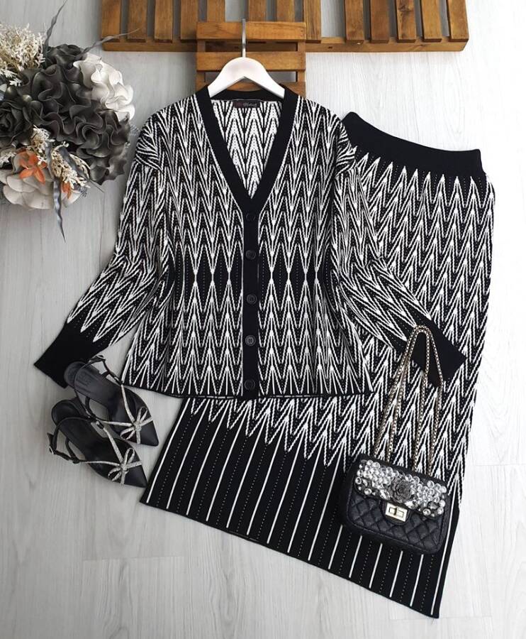 BALM GEÇİŞ DESENLİ ÖNÜ DÜĞMELİ ETEKLİ TRİKO TAKIM A3-4-8150-01-SİYAH
