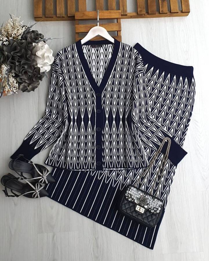 BALM GEÇİŞ DESENLİ ÖNÜ DÜĞMELİ ETEKLİ TRİKO TAKIM B3-5-8150-12-LACİVERT
