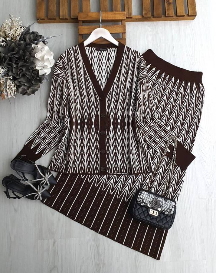 BALM GEÇİŞ DESENLİ ÖNÜ DÜĞMELİ ETEKLİ TRİKO TAKIM B3-5-8150-37-KAHVE