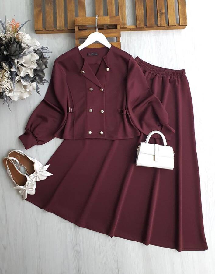 BEKET ÖN ÇİFT SIRA DÜĞMELİ KIVRIK YAKA ETEKLİ TAKIM A4-5-1698-04-BORDO