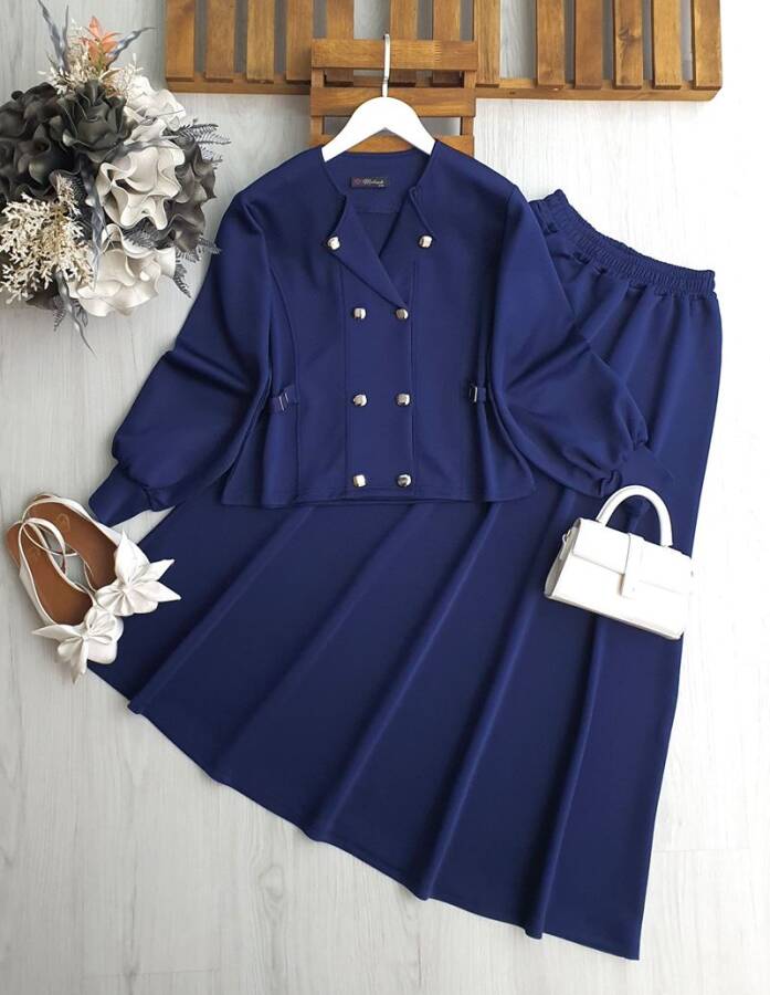 BEKET ÖN ÇİFT SIRA DÜĞMELİ KIVRIK YAKA ETEKLİ TAKIM A4-5-1698-12-LACİVERT