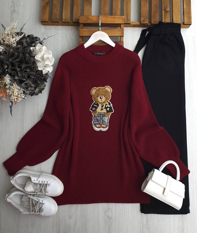 BELGES ÖNÜ AYICIKLI TRİKO TUNİK B3-1-8137-04-BORDO
