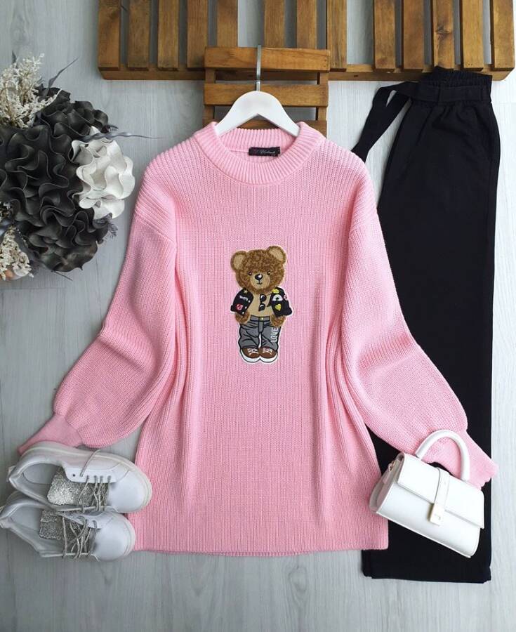 BELGES ÖNÜ AYICIKLI TRİKO TUNİK B3-1-8137-05-PUDRA