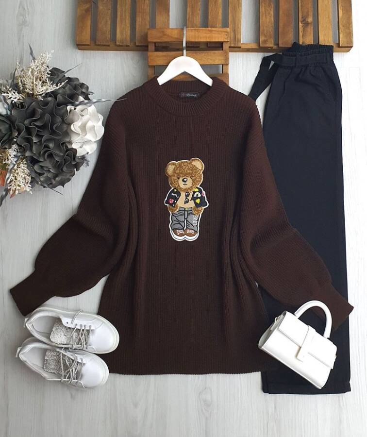 BELGES ÖNÜ AYICIKLI TRİKO TUNİK B3-1-8137-37-KAHVE
