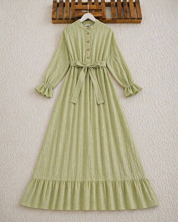 BİGN YARIM DÜĞMELİ BELİ LASTİKLİ KEMERLİ ASTARLI ELBİSE B8-4-2426-08-MİNT