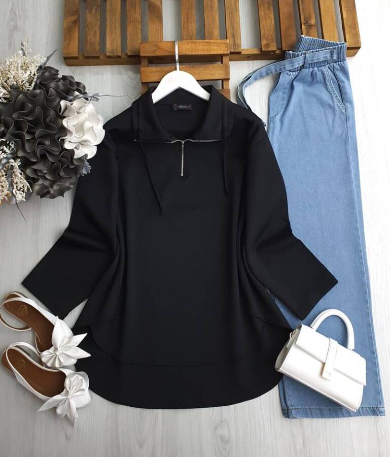 BOLGA BAĞCIKLI FERMUARLI KIVRIK YAKA TUNİK B1-1-5617-01-SİYAH