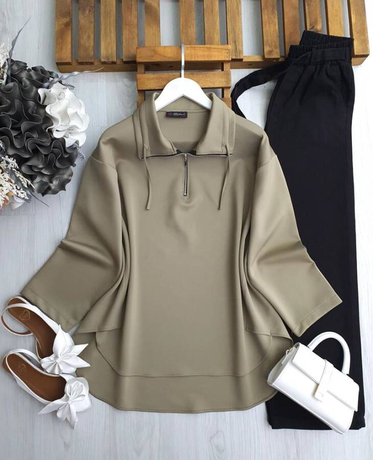 BOLGA BAĞCIKLI FERMUARLI KIVRIK YAKA TUNİK B1-1-5617-09-HAKİ