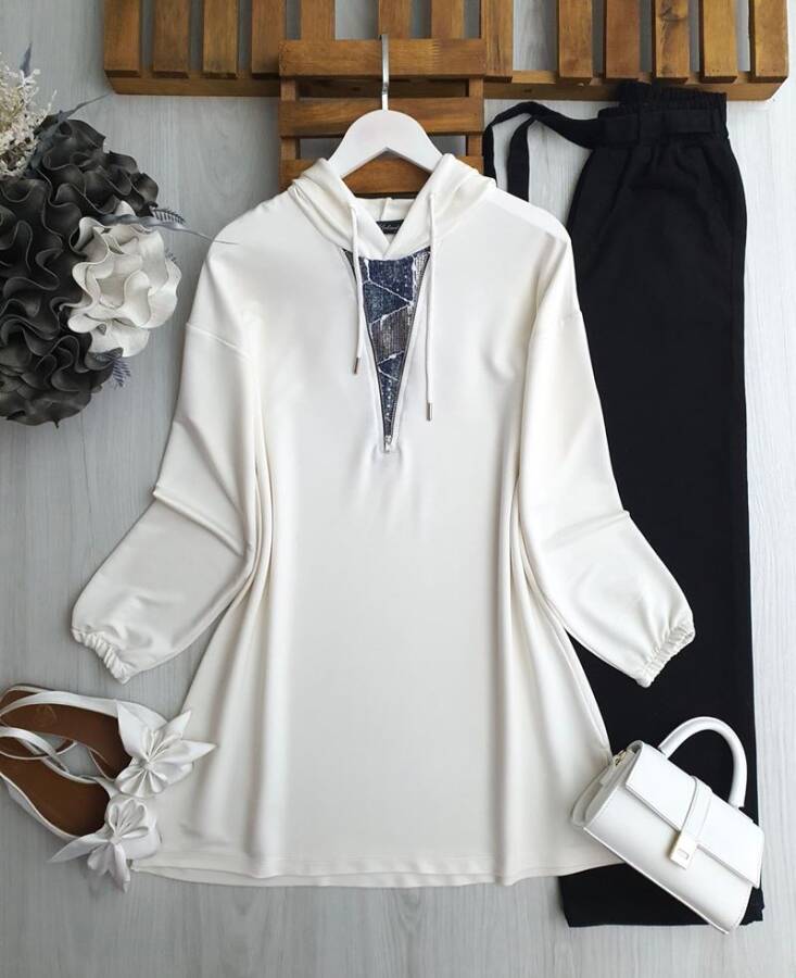 BUCE FERMUARLI KOT GARNİLİ TUNİK B1-2--5623-20-BEYAZ