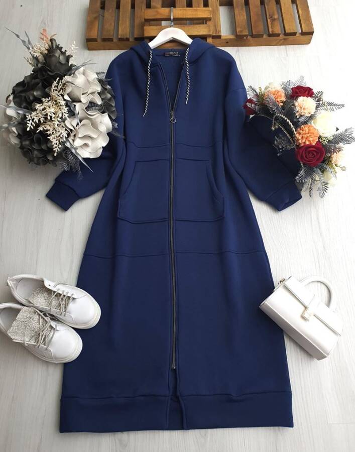 BUGEN FERMUARLI KANGURU CEP UZUN KAP 3206-12-LACİVERT