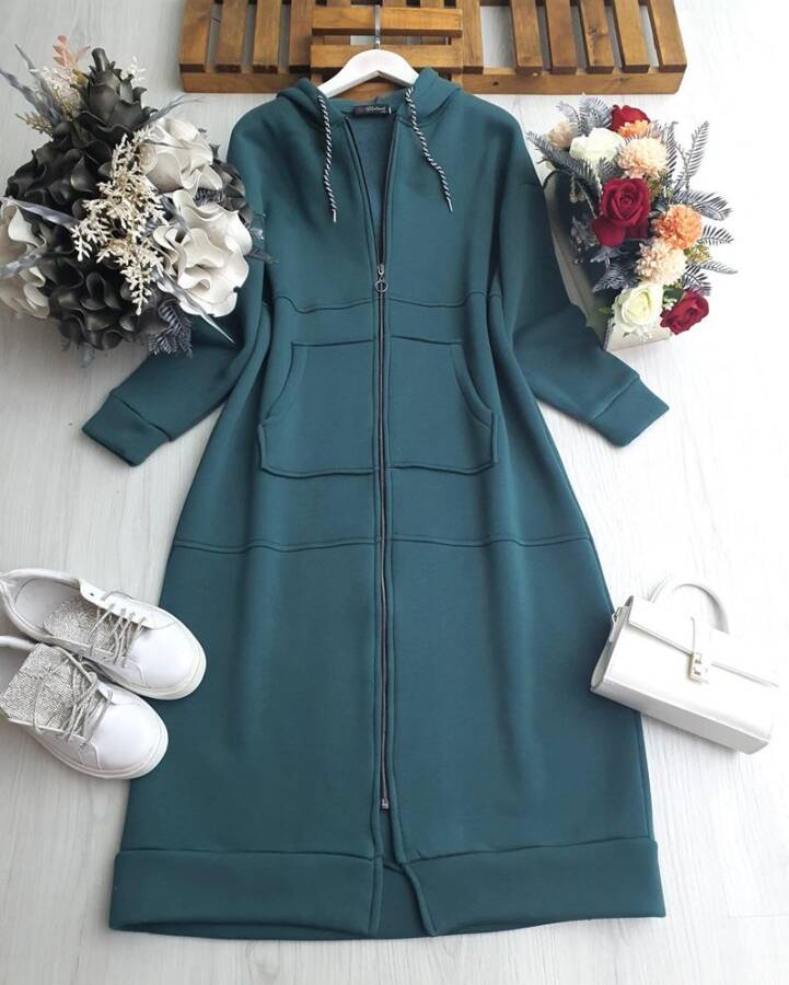 BUGEN FERMUARLI KANGURU CEP UZUN KAP 3206-27-ZÜMRÜT