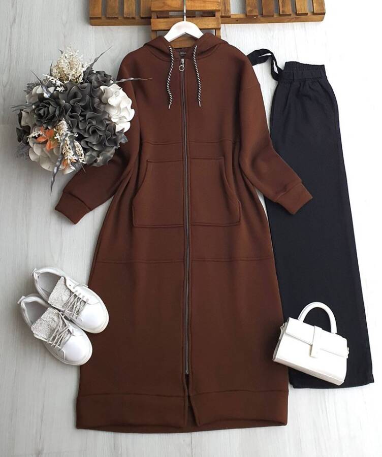 BUGEN FERMUARLI KANGURU CEP UZUN KAP 3206-37-KAHVE