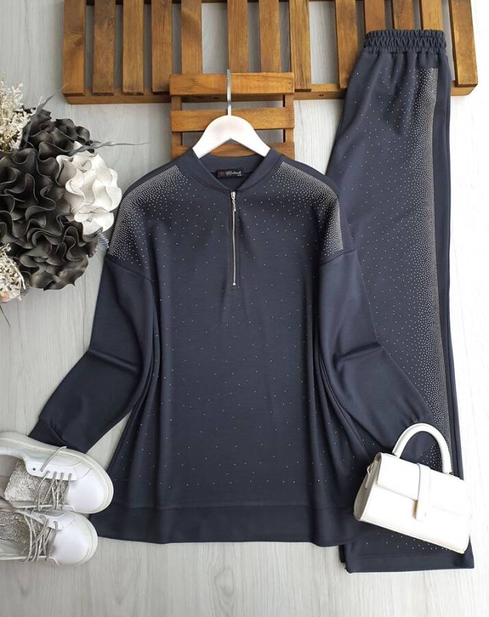 BUNA TAŞLI YARIM FERMUARLI İKİLİ TAKIM B2-2-1658-58-FÜME