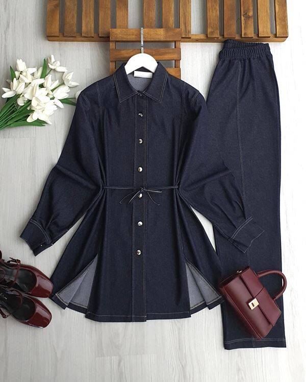 BUSYA ÖNÜ YIRTMAÇLI BELİ İPLİ KOT TAKIM A3-5-1740-12-LACİVERT