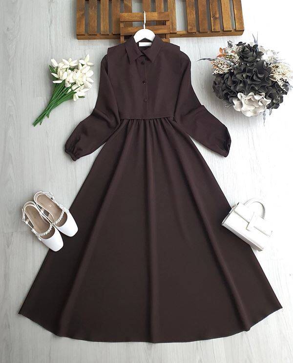 BUVGA YANDAN BAĞLAMALI YELEK BELİ LASTİKLİ ELBİSE TAKIM 2425-37-KAHVE