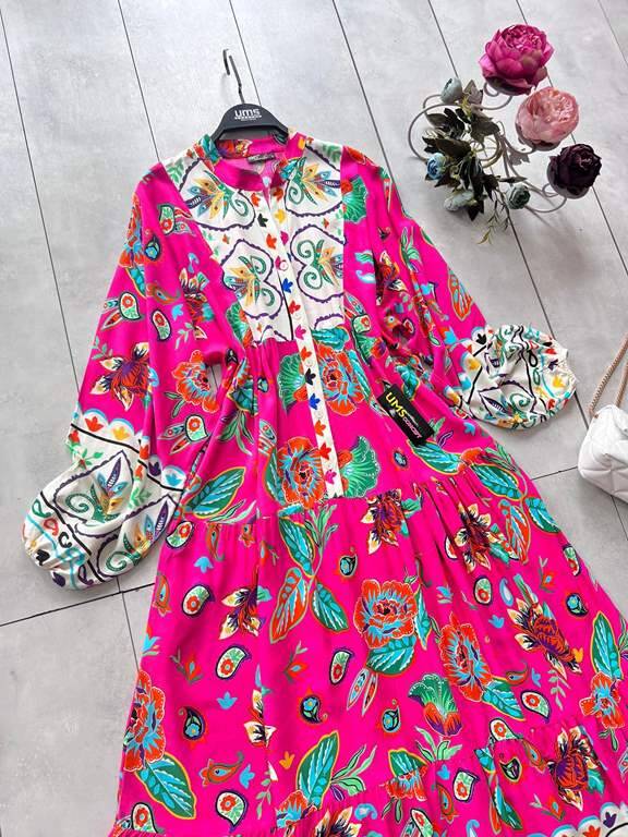 ÇAĞLA DESENLİ PATLI YARIM DÜĞMELİ SALAŞ ELBİSE D4-2300-28-FUŞYA