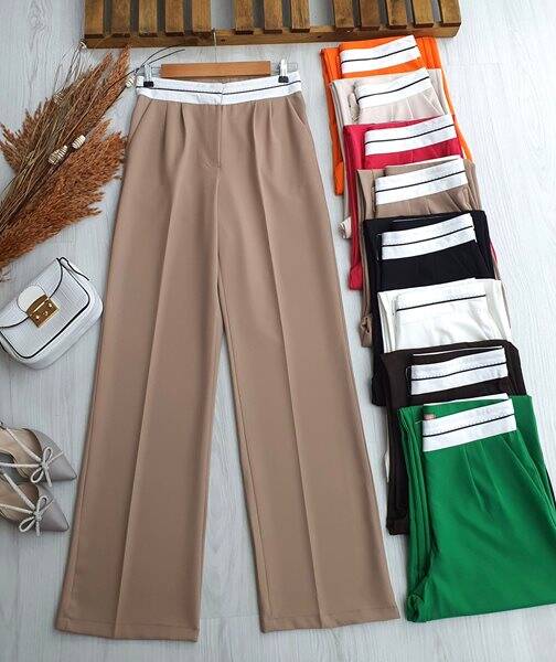 CALP BEYAZ ŞERİTLİ BOL PAÇA PANTOLON B10-3-23264-25-VİZON