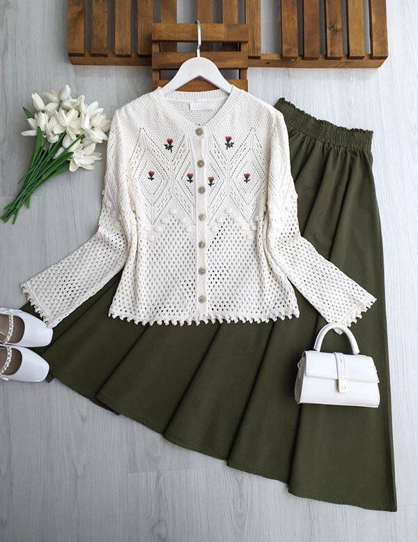 CANSA ÜST NAKIŞLI ALTI AJURLU DOKUMA HIRKA 8211-20-BEYAZ