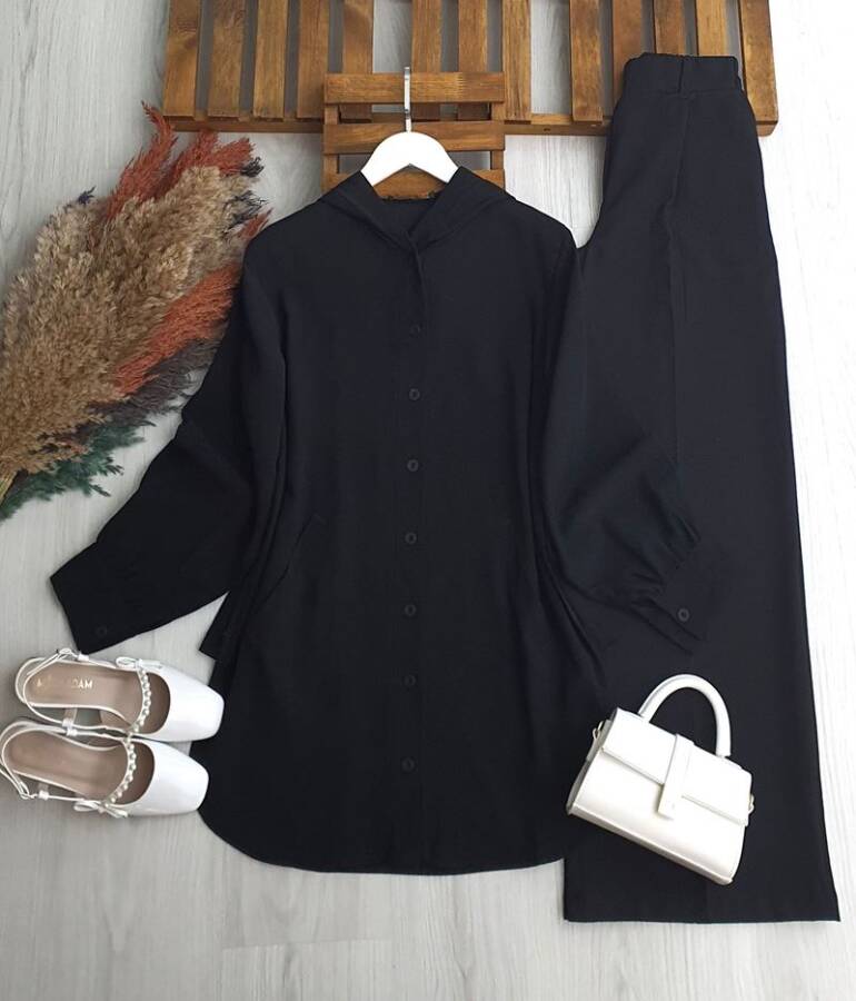 CEYDE ÖNÜ DÜĞMELİ KAPÜŞONLU SALAŞ TUNİK KAP B2-4-5671-01-SİYAH