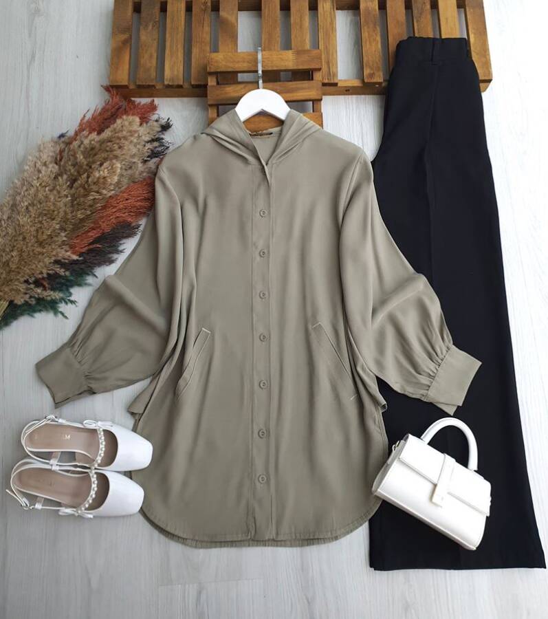 CEYDE ÖNÜ DÜĞMELİ KAPÜŞONLU SALAŞ TUNİK KAP B2-4-5671-09-HAKİ