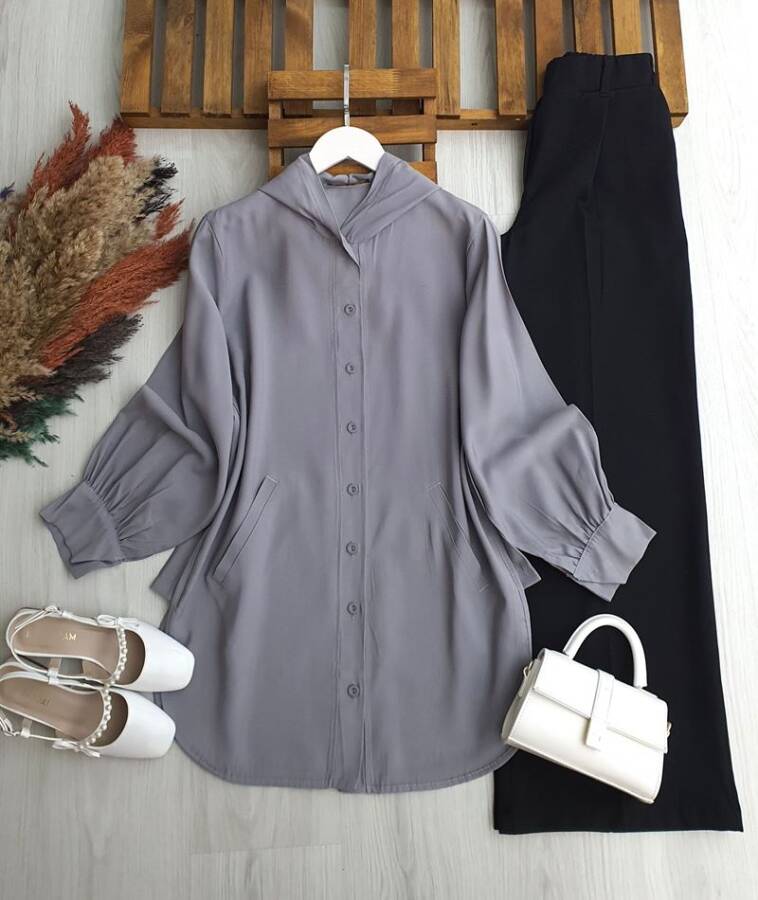 CEYDE ÖNÜ DÜĞMELİ KAPÜŞONLU SALAŞ TUNİK KAP 5671-26-GRİ