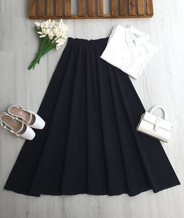 COPHA BELİ LASTİKLİ KİLOŞ KETEN ETEK 6121-01-SİYAH