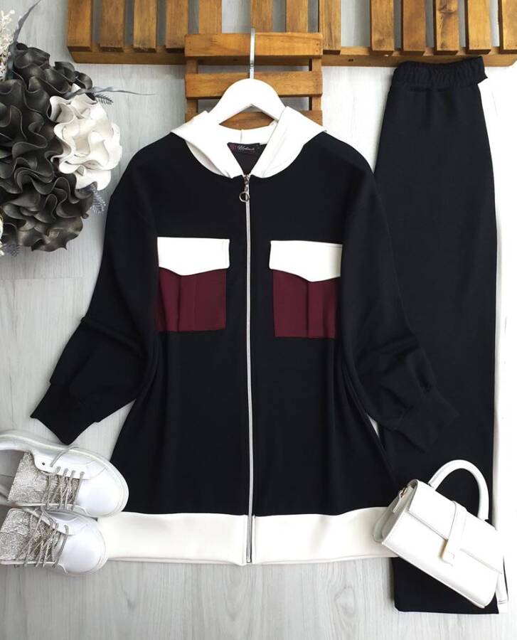 CUGHA GARNİLİ ÇİFT CEP FERMUARLI İKİLİ TAKIM B3-2-1661-01-SİYAH