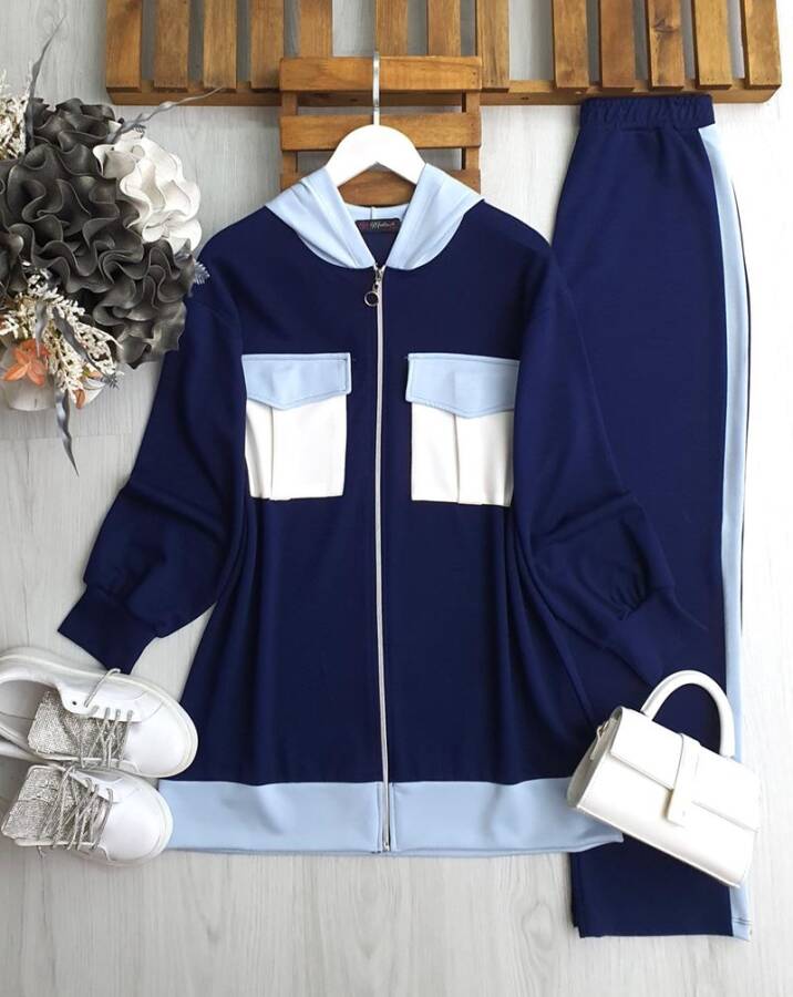 CUGHA GARNİLİ ÇİFT CEP FERMUARLI İKİLİ TAKIM B3-2-1661-12-LACİVERT