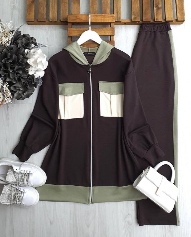 CUGHA GARNİLİ ÇİFT CEP FERMUARLI İKİLİ TAKIM B3-2-1661-37-KAHVE