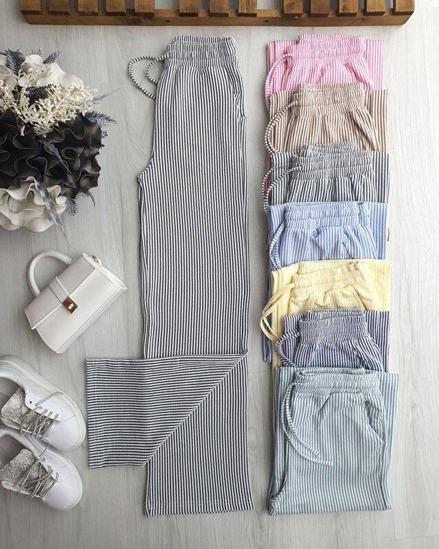 CUSAL BELİ LASTİKLİ BAĞCIKLI ÇİZGİLİ BOL PAÇA PANTOLON C9-6071-01-SİYAH