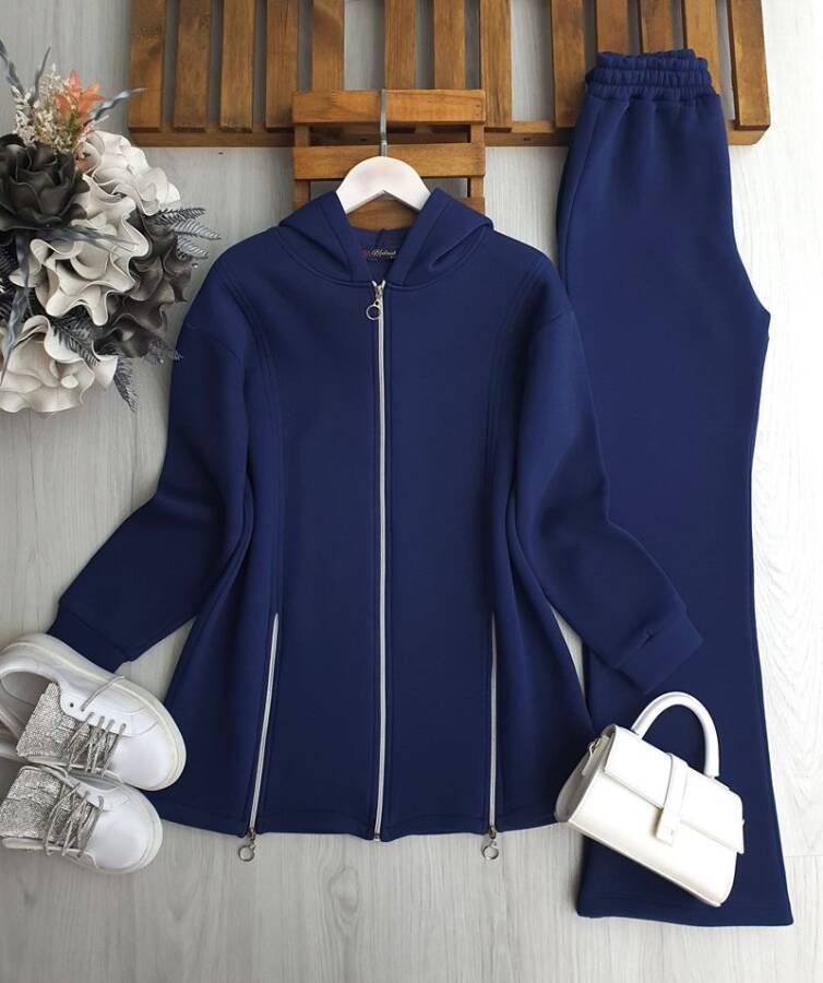 DAMFE FERMUAR DETAYLI ÜÇ İPLİK TAKIM C6-1688-12-LACİVERT