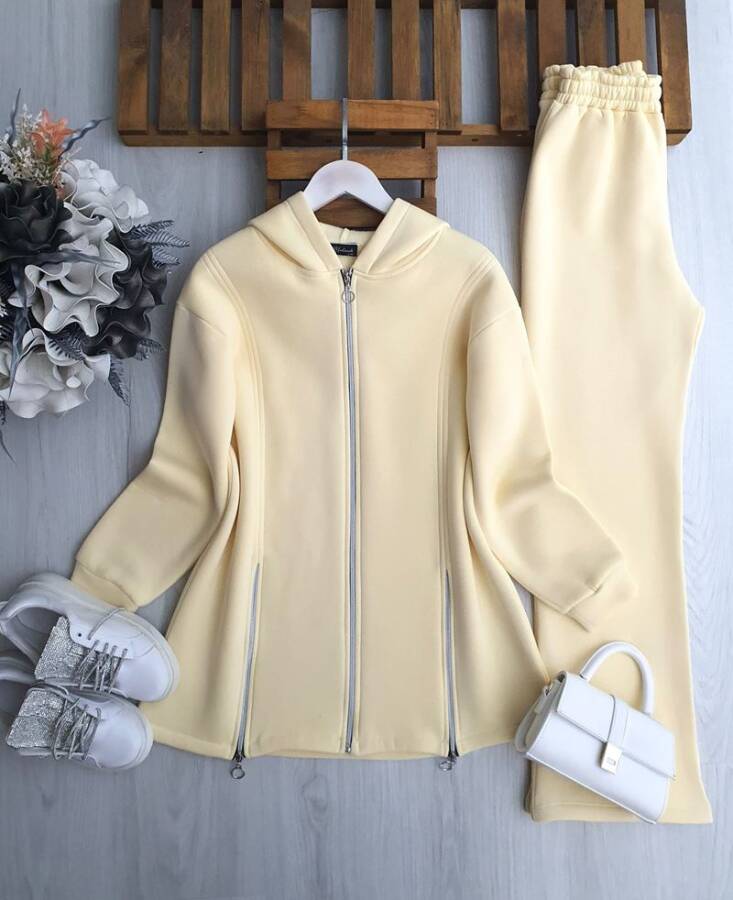 DAMFE FERMUAR DETAYLI ÜÇ İPLİK TAKIM C6-1688-23-SARI
