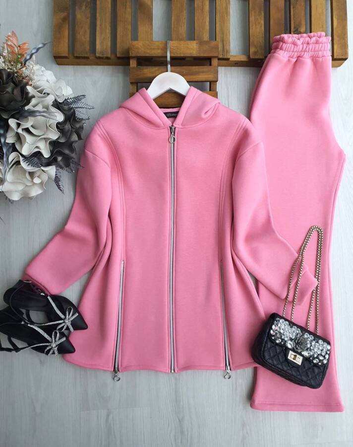 DAMFE FERMUAR DETAYLI ÜÇ İPLİK TAKIM C6-1688-63-ŞEKER PEMBE