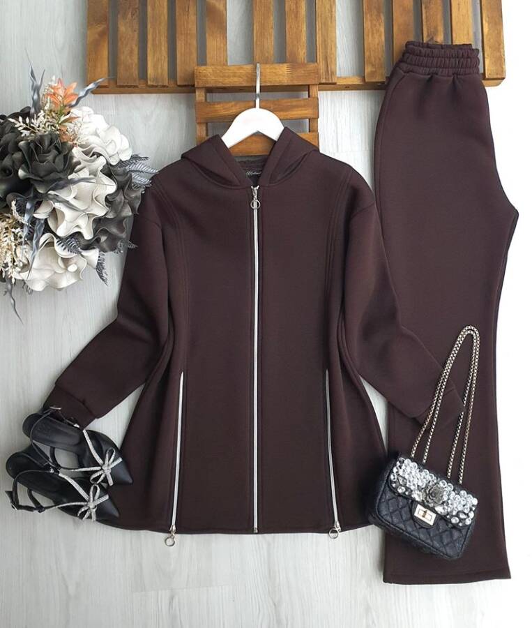 DAMFE FERMUAR DETAYLI ÜÇ İPLİK TAKIM C6-1688-98-KOYU KAHVE