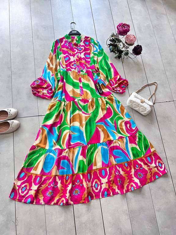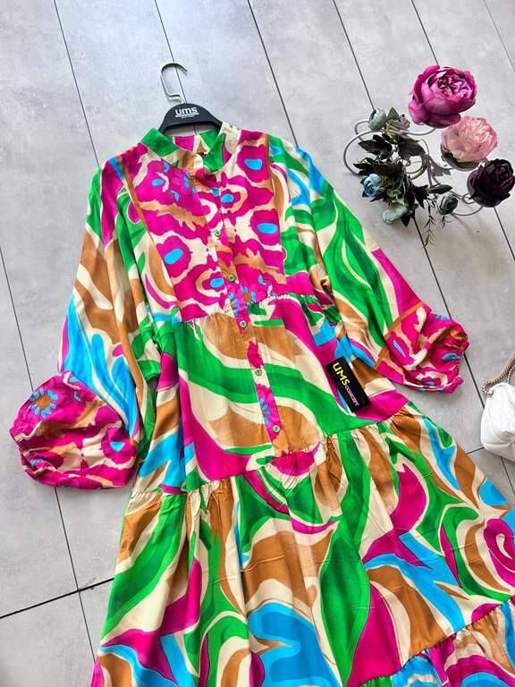 DEFNE DESENLİ PATLI YARIM DÜĞMELİ SALAŞ ELBİSE D4-2301-28-FUŞYA