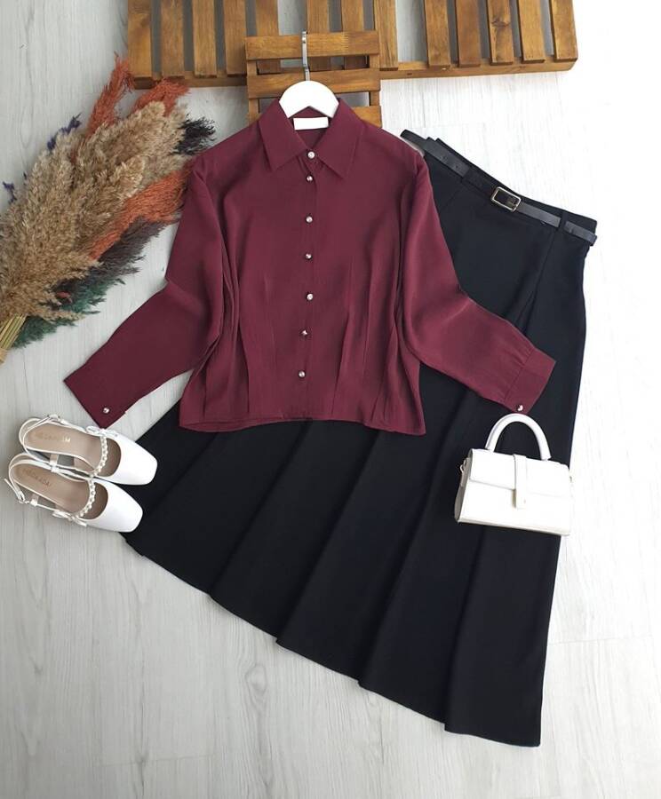 DEYG PENS DETAYLI METAL DÜĞMELİ GÖMLEK B5-3-5658-04-BORDO