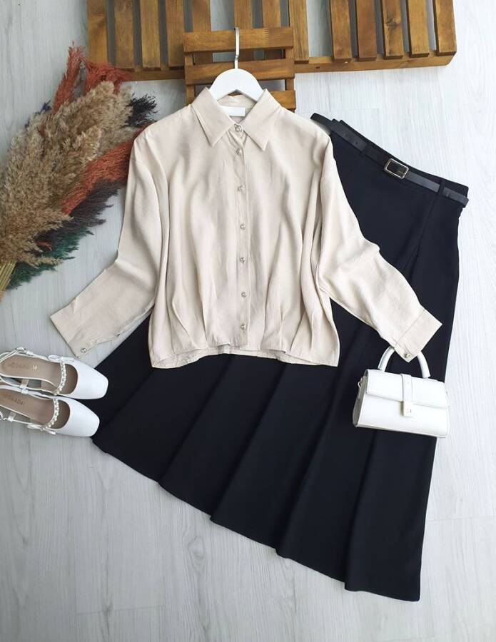DEYG PENS DETAYLI METAL DÜĞMELİ GÖMLEK B5-3-5658-34-BEJ