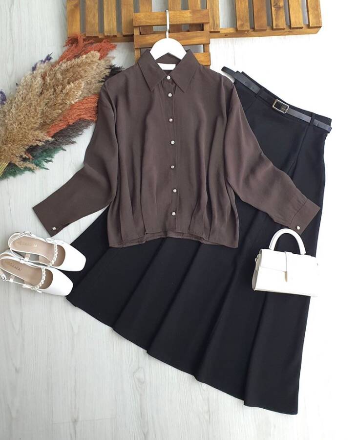 DEYG PENS DETAYLI METAL DÜĞMELİ GÖMLEK B5-3-5658-37-KAHVE