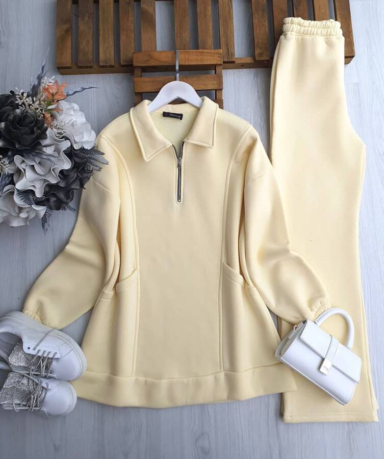 DİHES YARIM FERMUAR YAKALI TORBA CEP ÜÇ İPLİK TAKIM 1679-23-SARI