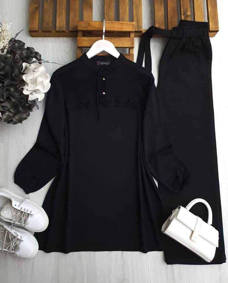 DINE YAKA BAĞCIK ÖNÜ FIRFIRLI TUNİK B4-4-5624-01-SİYAH
