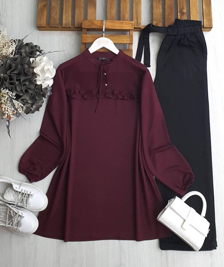 DINE YAKA BAĞCIK ÖNÜ FIRFIRLI TUNİK B4-4-5624-04-BORDO