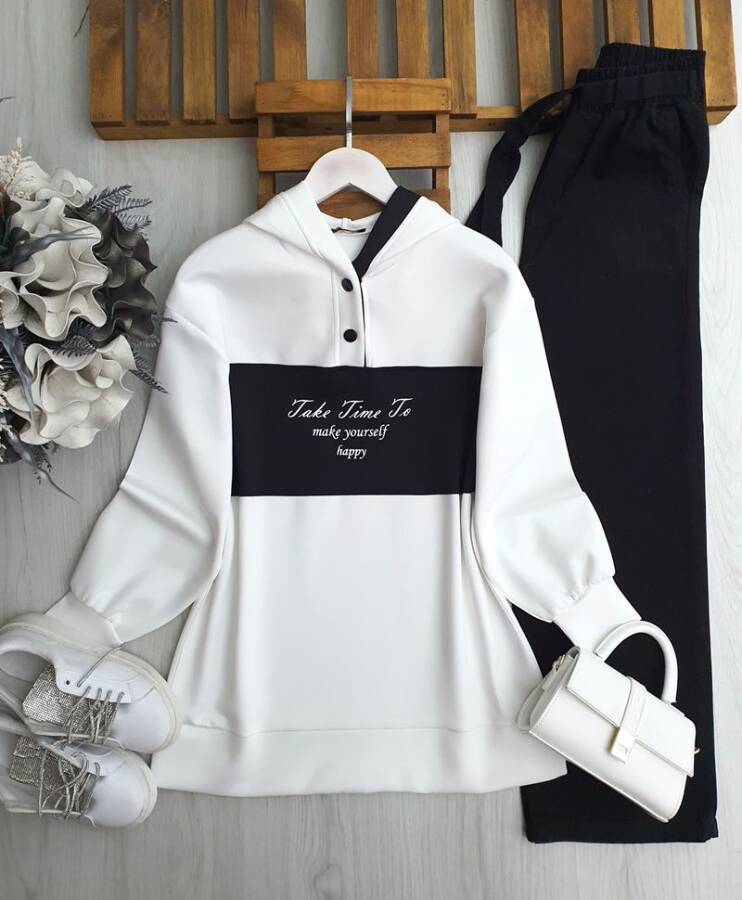 NEFS KOLDAN ÖNE BEYAZ GARNİLİ PANTOLON ŞERİTLİ TAKIM 1681-01-SİYAH