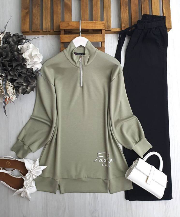 DULHE YARIM FERMUARLI ALTI BASKILI TUNİK 5630-07-YEŞİL